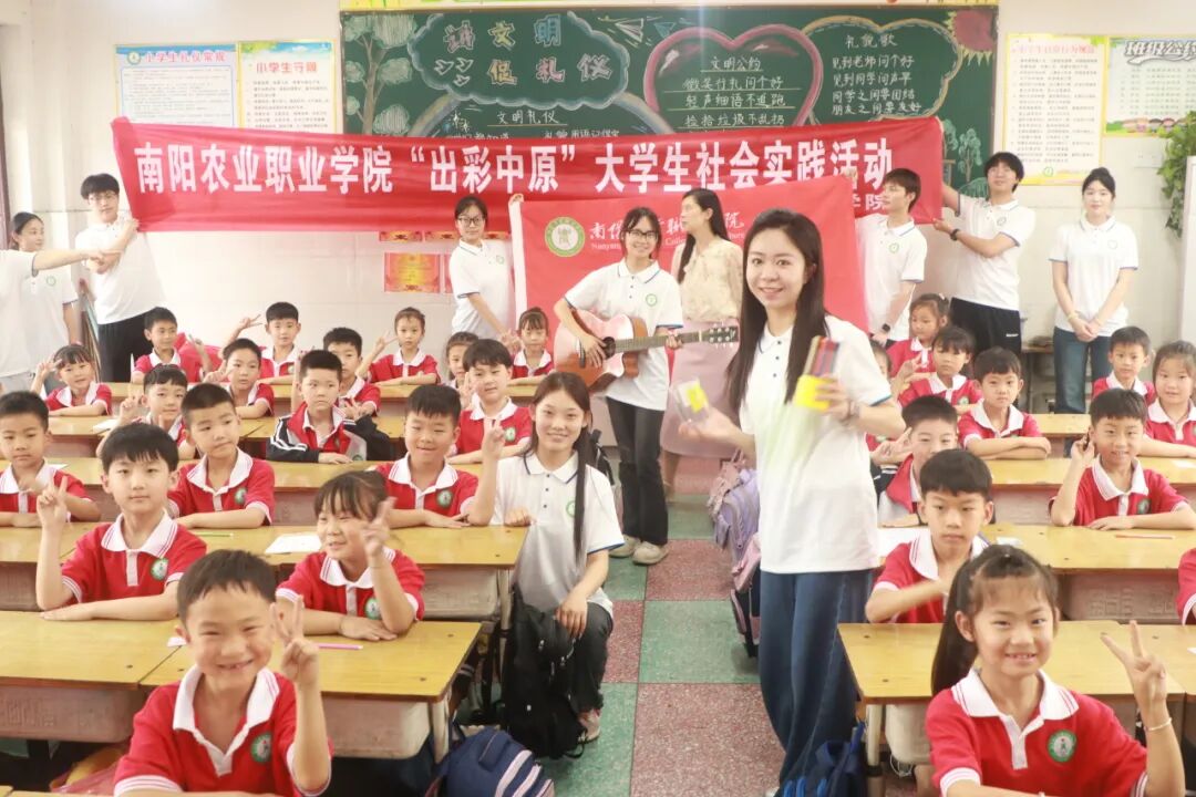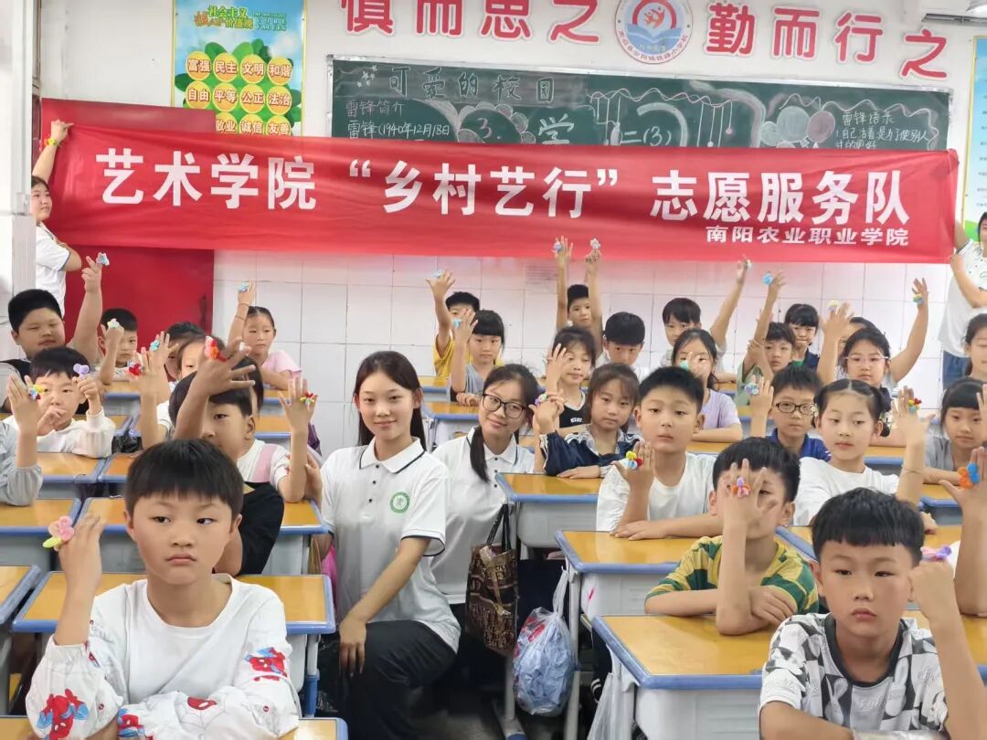 盛夏时节,乡校焕彩。2025 年暑期,南阳农业职业学院艺术学院 “乡村艺行”志愿服务队再度启程,17名涵盖小学教育、音乐教育、音乐表演专业的师生,奔赴南召县云阳镇,为铁路小学、第一中心小学、第二小学、第三小学及云阳镇第二中学5所中小学的学生,带去了一场集非遗传承、艺术熏陶与心理关怀于一体的志愿服务盛宴。