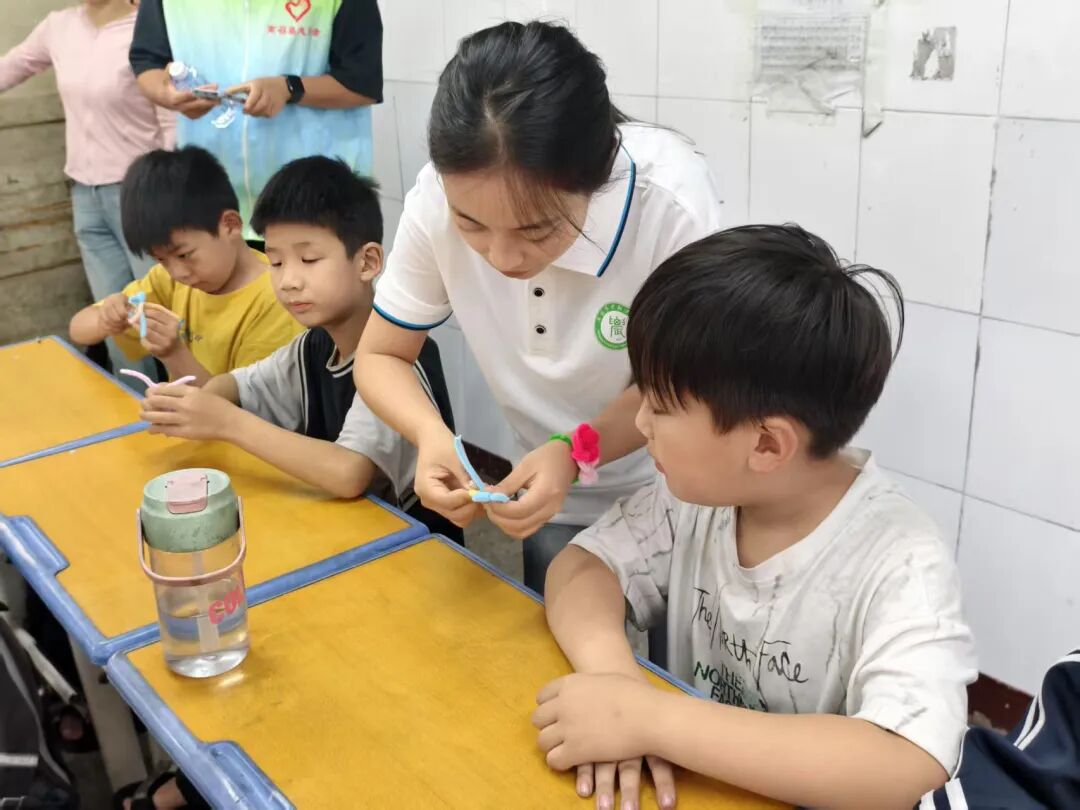 在铁路小学与第一中心小学的课堂上,非遗与手工课程是孩子们最喜欢的“趣味时光”。志愿者们手持红纸与扭扭棒,从剪纸的基础对折、镂空技巧,到扭扭棒的造型拼接、色彩搭配,手把手指导学生创作,让传统文化的种子在孩子们心中悄然扎根。