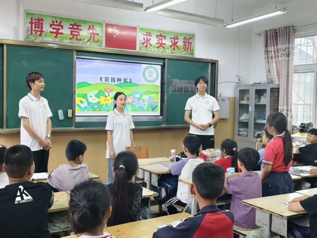 在第二小学与第三小学的活动中,志愿者们将红色教育与思政元素融入音乐素养课。课堂上,志愿者教唱《少年中国说》《歌唱祖国》《映山红》等红色歌曲,结合歌词故事讲解革命历史,用节奏互动、乐器体验等形式,让孩子们在音乐熏陶中厚植爱国情怀,让思政教育在乡村校园里“活”起来、“唱”出来,充分展现了我院暑期三下乡活动独特魅力。