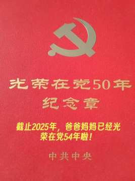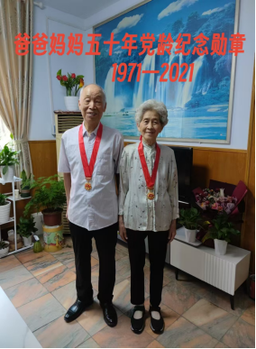 这张照片记录的是我父母2021年戴着《光荣在党五十年》荣誉奖章的照片。我父母都是公职人员,已经退休25年,他们从小就教育我做事要堂堂正正、做人要清清白白。