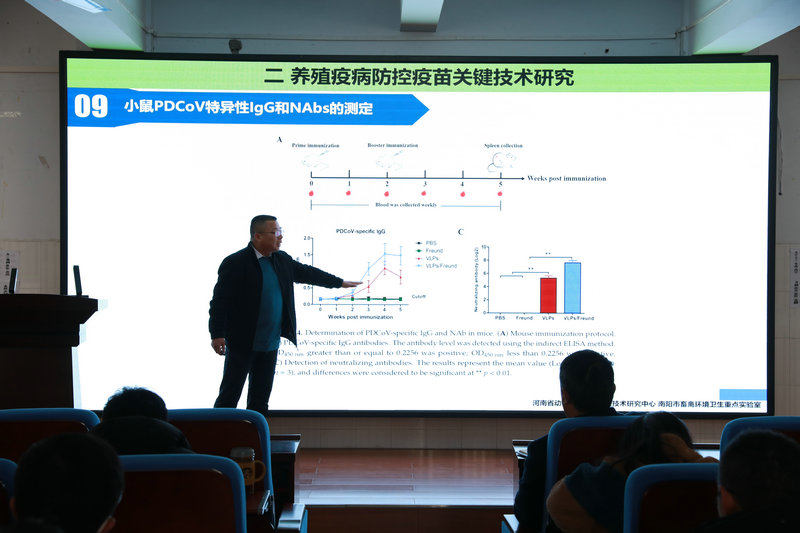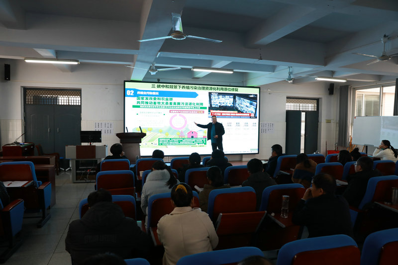 王铁军围绕“碳中和背景下养殖业发展瓶颈问题和解决方法”“养殖疫病防控疫苗关键技术研究”“养殖污染治理资源化利用原位修复”“养殖节能减排专利技术推广应用”四个方面进行讲解,他认为,解决南阳企业发展困难过程中产生的科研课题形成SCI论文和专利转化促进了自己的教学改革和学生培养,这些是科技工作者从事教科研的魅力所在。