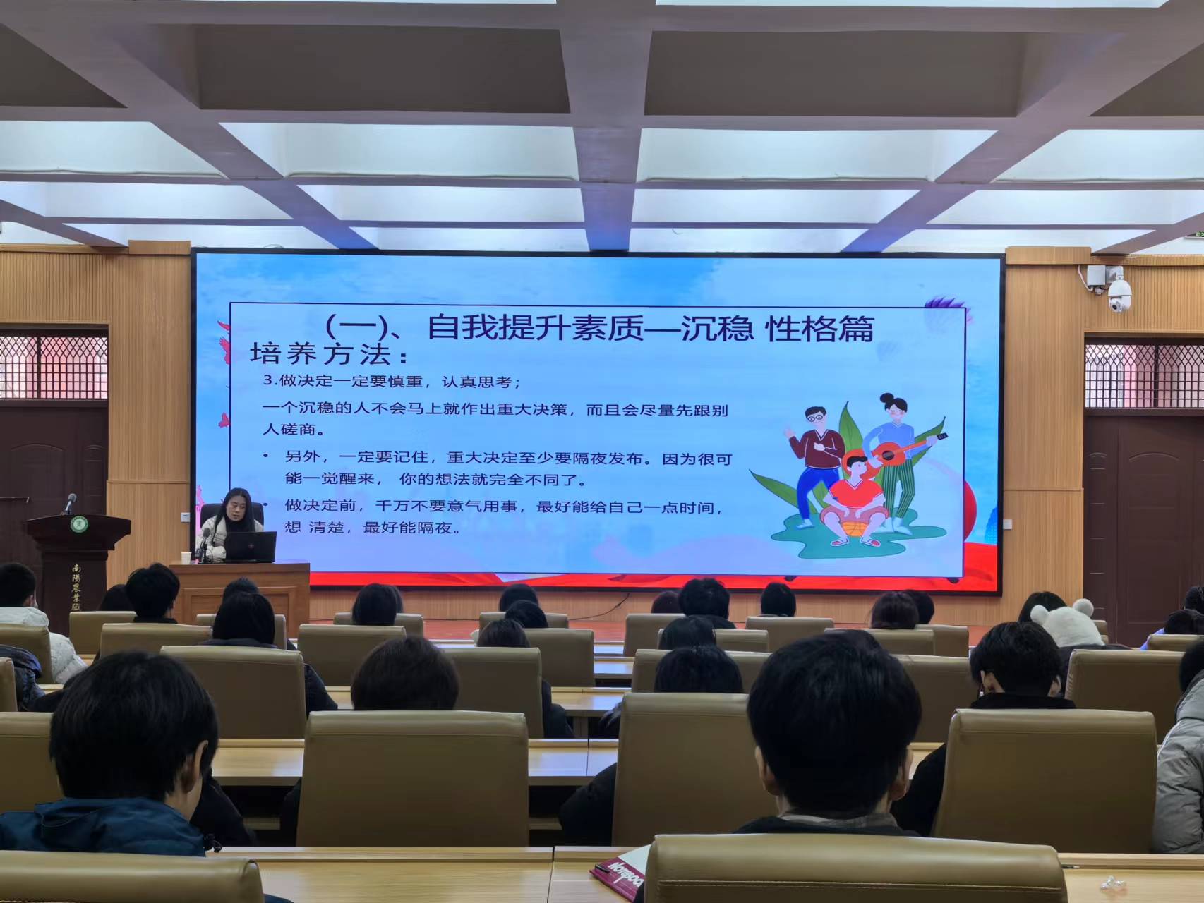 在素质提升方面,朱老师提出了学生干部应提高情商胆商,培养积极心态,提高自我管理意识。此外,朱老师还对学生干部的基本礼仪进行详细讲解。她指出,礼仪是人际交往中的“润滑剂”,良好的礼仪不仅能展现个人的修养和品质,还能提升团队的整体形象。她希望学生干部们能够注重细节,从言行举止中彰显出商学院学子的风采。通过朱老师的讲解,学生干部们不仅对自己在学生组织中的角色有了更清晰的认识,还对如何提升个人素质和礼仪有了更深刻的理解。